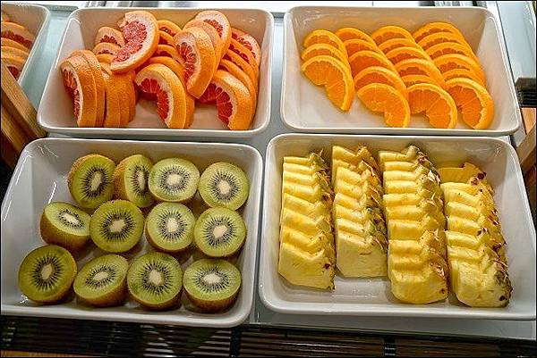 這裡的早餐水果是直接冰在冷藏室裡面,取用時再拉出來就好,感覺既保鮮又潔淨,麵包類也都好吃!還有一罐一罐的優格,當然也有生菜沙拉跟熟食那些,但我早餐都吃的很簡單,完全沒有拿。