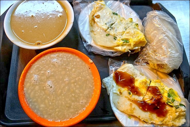 這裡的蛋餅是米漿皮蛋餅,Q彈有厚度,加帶點辣的蒜蓉醬油更加分,堪稱蛋餅通的大叔才吃了一口就說板橋光正街的粉漿蛋餅更讚!