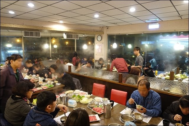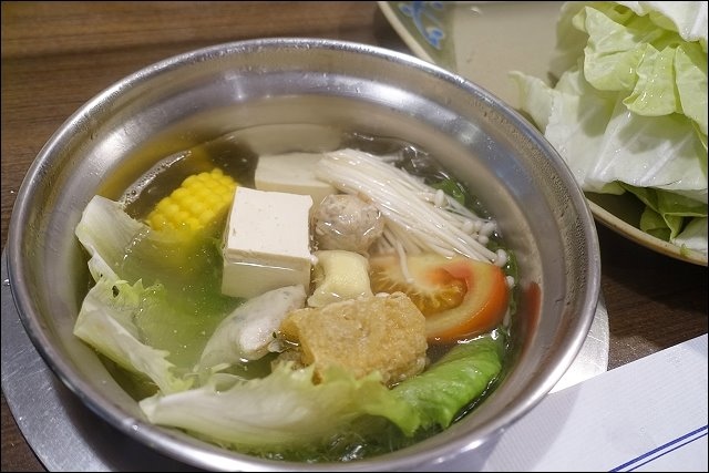 店家菜單有特別標示出雞、羊、雪花羊跟松阪豬是使用重組肉,還好我愛吃的牛肉不是重組肉。用餐時間算是我吃過最短的,只有70分鐘,客人全體採取速戰速決模式。共鍋有低消限制,大家要看清楚。雙人座位二個人坐還算OK,像我沒事帶了小阿弟來,硬是擠了一張兒童椅進來,實在有點太擠啦@@桌上會備好菜盤及湯鍋。菜盤很一般,青菜有高麗菜跟大陸妹二樣,火鍋料就丸類幾顆、玉米、金針菇、番茄等等,沒有什麼特別的。然後啊,有人說服務不好,其實用餐後根本不太需要服務人員耶,醬料、飲料全都自己拿,連加湯也直接放一壺湯在桌上給客人自己加。所以只有在登記候等叫號,有些客人會想知道要等多久,但其實店家也很難回答,得看客人吃的速度。