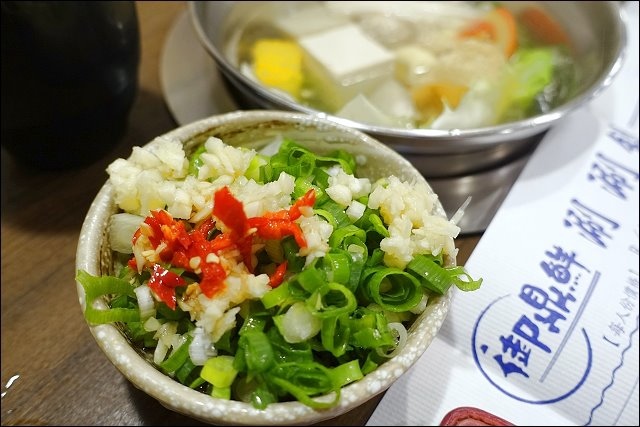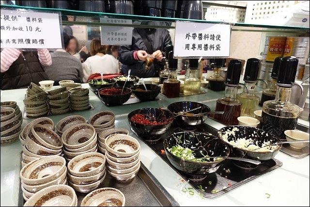 調味料自取,蔥花、蒜末、辣椒、蘿蔔泥,該有的都有啦。醬有醋、香油跟醬油。值的一說的是,蔥花補的很快,完全不怕客人吃。