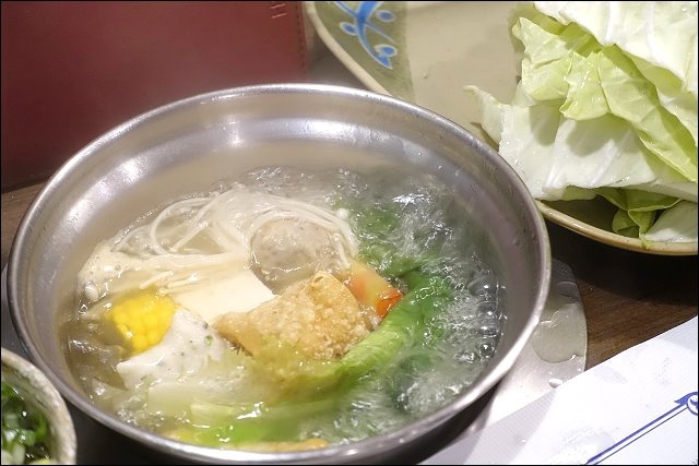 高湯有火鍋高湯,使用柴魚粉,也有香菇粉的素食高湯,沒有特別說的話,都是先擺好柴魚高湯。阿弟爸喜歡把火鍋料一次通通放下去煮,我則喜歡要吃的時候再煮。