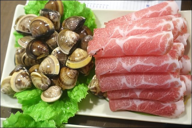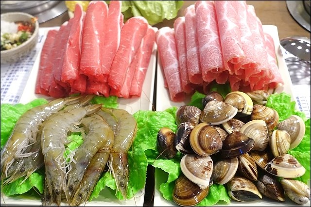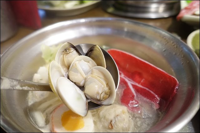 二人各一份雙拼份量滿點,我跟阿弟爸二人一起分著吃,完全不會覺得不夠,我愛牛肉比豬肉多一點,蛤蜊第一名,列為必點菜色!聽說以前份量更多,難怪有的人會選擇共鍋。