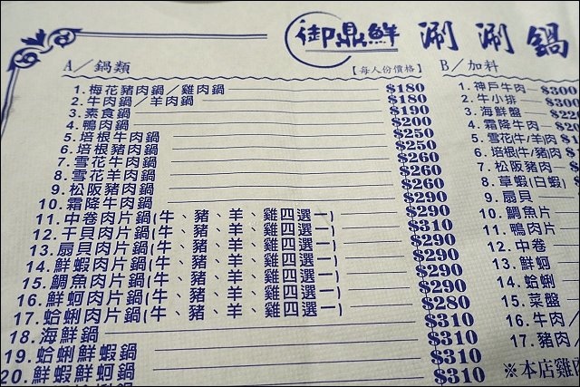 11~17項是海陸雙拼熱選菜色,價格最貴也是310元打死,肉鍋最便宜只要180元,真的很便宜。