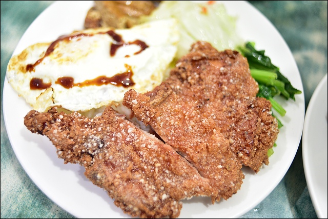 排骨飯(90元),大家一吃這炸排骨猛點頭!皮炸的有酥,豬排有加上金棗跟紅麴味道超正點,列為必點菜色第一名!