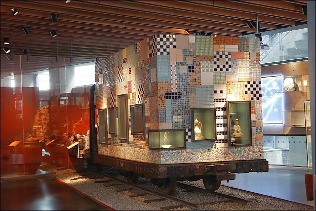 陶瓷博物館展場好幾層樓,很好殺時間,雖然我們母子沒啥藝術天份,陶博館裡有不少有趣的創作,古時候的瓦片、甕、甚至還有小動物,大人小孩一起走走看看玩的很開心。