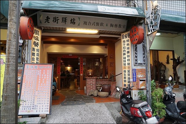 邊走邊玩很快就到中午吃飯時間到啦!鶯歌有名的這家厚道飲食店,走復古風格,假日人潮滿滿,不想排隊可得早點到!不過店家每週二公休,偏偏我這天來不但下雨,還剛好是星期二,想吃沒得吃@@直接走進旁邊店內滿座的老街驛站複合式餐飲,剛好外面還有一桌空桌,正好讓我們躱雨吃午餐。