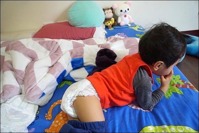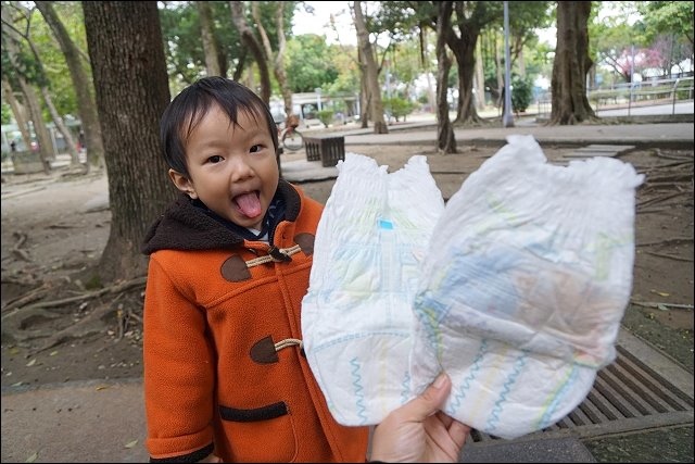 然後,阿弟在這個moment又說要尿尿...在天橋上是怎麼找廁所啦。不過我們沒在怕啦,拉拉褲不用一定非得找到親子廁所或尿布台躺著換尿布才行。褲子一脫就能換,穿尿布就像穿小褲褲一樣簡單,媽媽我無痛滿足小少爺頻尿的狀況。