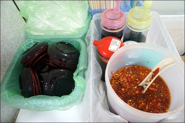 醬油、醋、筷子跟小碟子請自取,右下的醬油辣醬辣度十足!