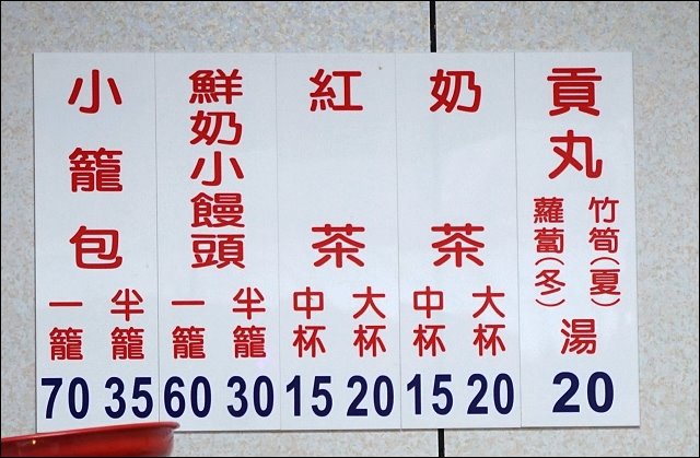 菜色很簡單,就小籠包跟小饅頭,熱湯只有一種,現在冬天是蘿蔔湯,夏季是竹筍湯,飲料有紅茶跟奶茶二種。