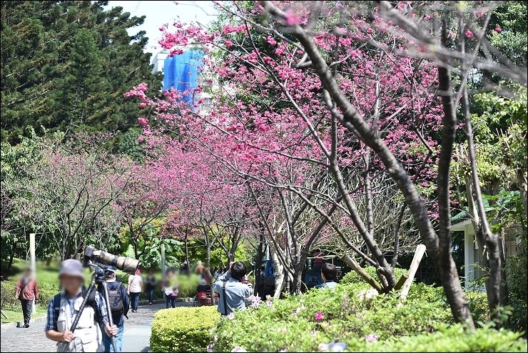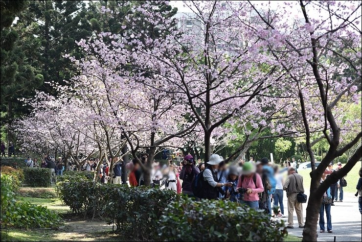 前幾年主要是靠圍牆外側的櫻花大道,這側的滿開期大約在三月初,今天來已經是尾聲。