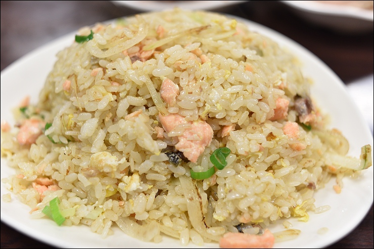 薄鹽鮭魚炒飯160元,價位不便宜,飯量也是像座小山。