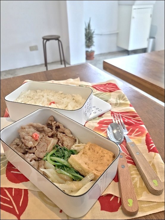 但這其實是間網路便當店,你能想像嗎?外帶是主力,內用只是順便附帶,所以佔的空間不大,白色情人節那天我跟姐妹相約來吃便當也是一種情趣(自己的情人節自己過)!這裡每周便當菜色是固定的,每週五粉絲頁會更新訂購表單,每天就是提供兩種不同的便當,所以三個朋友來沒辦法各吃三種,會有一個是重覆的!外帶便當盒長這樣,台北市滿10個就免費外送,由於採接單生產,且部分餐點需靜置8小時熟成入味,無法接受當日的訂購或取消。