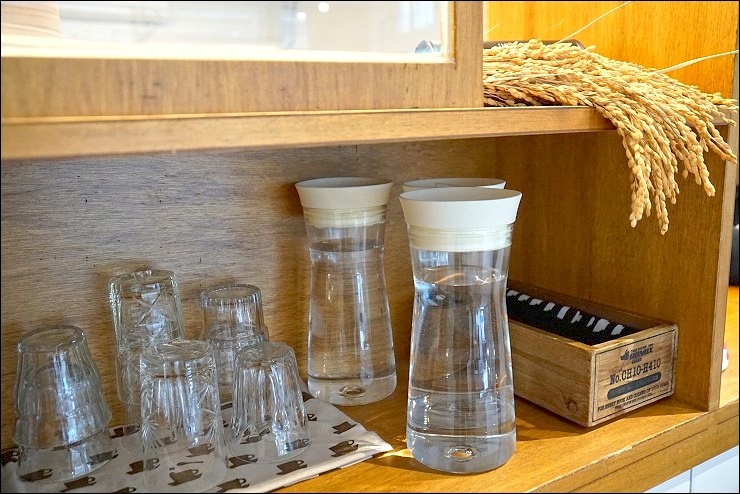 裝潢很日式,走極簡風格,開水自取,後面還備了個水槽可以洗手,掛上日本的手撕月曆,還有最近很流行的乾燥花。
