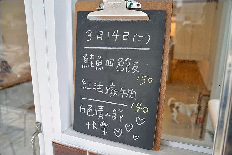 第四寶是他們家的管管,好可愛的狗兒,每天都站在門口迎接客人,就說姐妹特愛紅酒燉牛肉,隔天特別自己再來吃,結果撲了空,雖然每周菜色固定,但每天還是會些微變動,最後自己現吃還帶了個牛肉壽喜燒便當(150元)送去學校給兒子,兒子回來大讚好吃!還以為媽媽怎麼功力突然大增:P