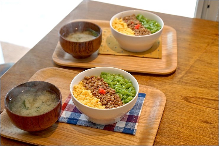 我跟另外一位姐妹點三色飯,四色中的鮭魚應該是沒有食材了,只剩三色,所有食材全都切成丁這樣鋪在上面,真好看!托盤再加上小桌巾真的好日式,如果有來逛sogo的朋友,中午或晚上多走幾步路來這吃就對了!把省掉的餐費再買件衣服:P。不過這裡營業時間週一~五為11:30~19:00,週六、日、例假日為休息日,所以平日晚餐要早一點來喔~~