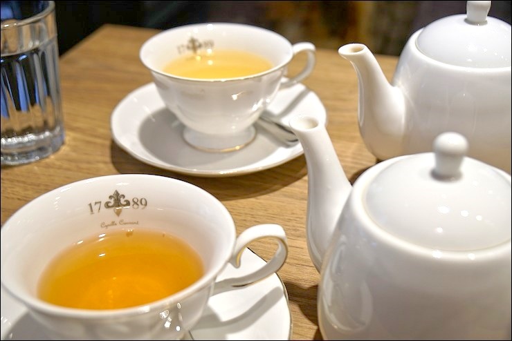 明明才剛吃飽,不小心又點了滿滿一桌,茶杯內緣有店名logo字樣,點的兩杯熱茶沒什麼特別的感覺,就是拿來配甜點而已,哈~
