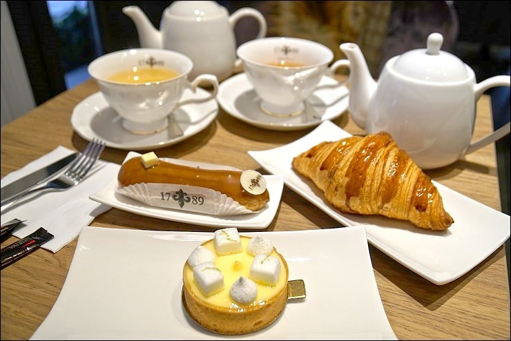 這天跟著banbi的腳步來到東區吃美食,這家kitchen island其實主打外賣便當(10個台北市就外送),但廚房及內用區設計的超簡約日式風,有夠小清新的,這那門子的便當店啦!他應該端咖啡跟三明治出來才對啊XD,還有一隻超活潑可愛好喜歡親近人的管管(店狗)!來到東區逛街,尤其在sogo復興館或忠孝館的朋友,別只在美食街徘徊傷腦筋該吃什麼好,出來sogo復興館旁這家kitchen island內用超划算!吃完再到附近巷內的1789二店喝下午茶,他家的閃電泡芙、檸檬塔跟二店限定的櫻桃可頌都好讚!主廚是法國人老婆是德國人,當天上桌的甜點全由負責接待客人的老婆所推薦!吃完馬上跟姐妹說還想再來把全部的甜點全試過(這心願是不是太匪類,到底有沒有在認真減肥啦> <!)~~