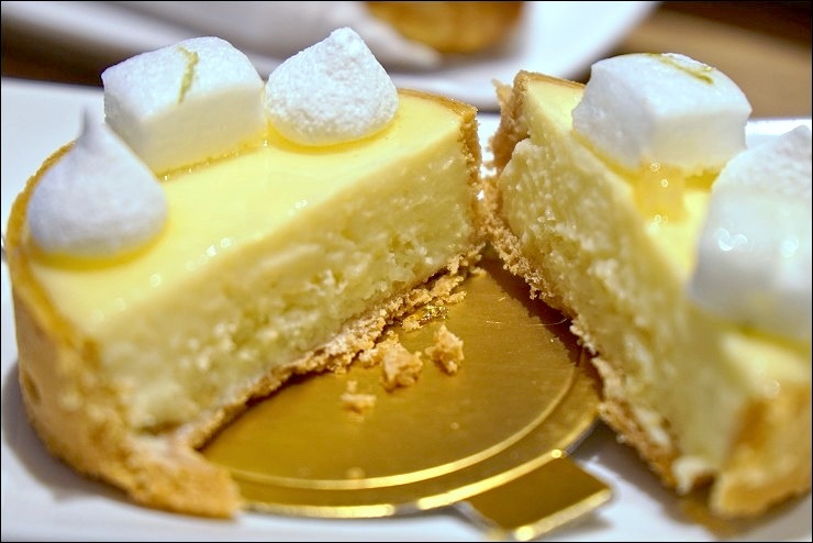 底層的塔不會很硬,一刀切下去很好分離,酥脆的底層搭配酸中帶甜的檸檬餡,整個很清爽不膩,上面的檸檬凝乳內餡口感有點慕斯的滑跟的輕乳酪的綿,很有層次,我很喜歡!