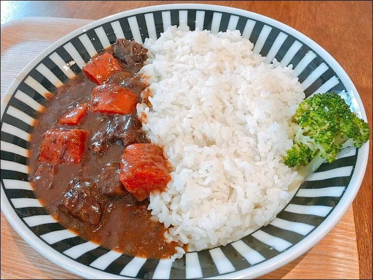 由於兒子大愛,姐妹後來又上門外帶了好幾次便當,我自己也有跟她約了再去,其他菜色全都吃過一輪(漢堡排、咖哩飯),她還是最愛紅酒燉牛肉,我覺得微辣的咖哩飯也不錯!