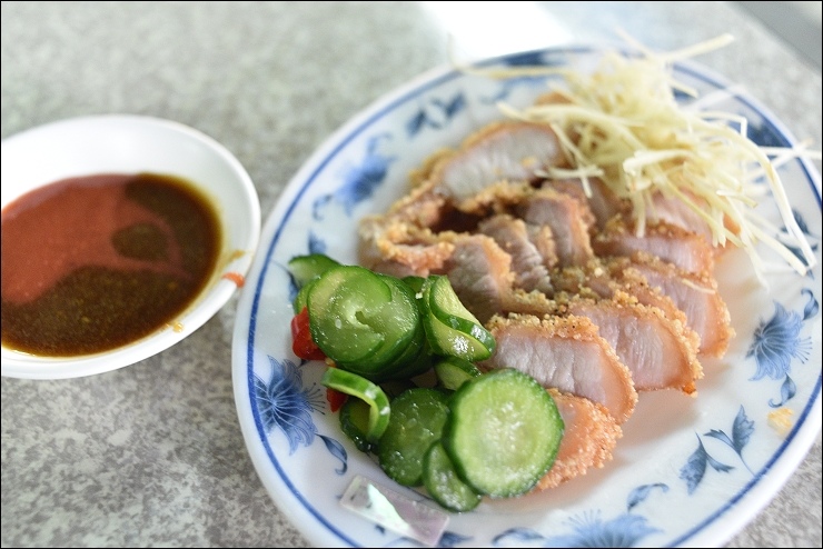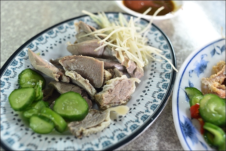 招牌紅燒肉和綜合小菜,紅燒肉可選瘦的或五花,好吃但還不到超厲害的程度,附的小黃瓜有加分,沾醬蒜味超重,另外想點的腿庫肉皮不知道是沒賣還是賣完了,反正就是沒得點。
