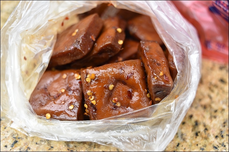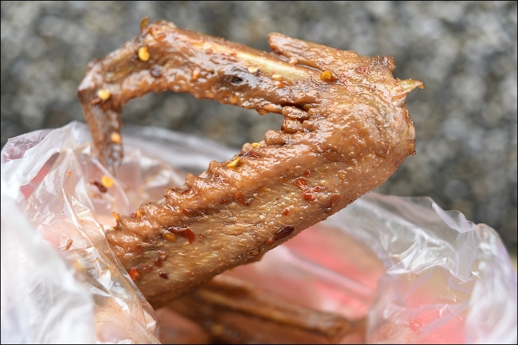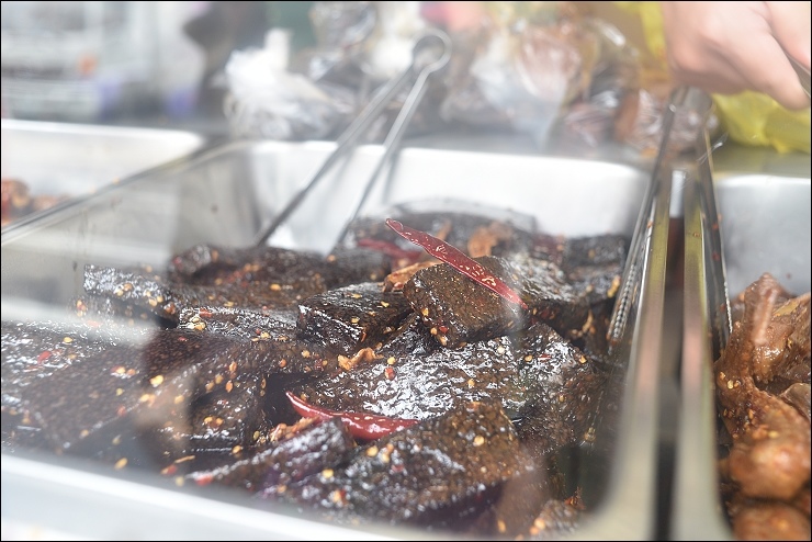 林家滷味的價位算高,網友留言說黑雞腳、鴨蛋、豬血糕、豆干、鴨翅⋯真的必吃!今天九點多到手時滷味好像剛滷好,還是溫溫的,外觀看起來很辣,但吃起來不太辣,敢吃一點點辣的小朋友應該都可以接受,只是鹹度相對也高一點,很適合當下酒菜。