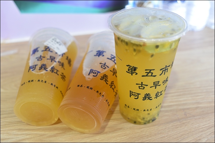 停好車走回飯店經過阿義紅茶冰,看到門口一堆機車騎士在等外帶,不順路買個幾杯回飯店涼一下怎麼忍得住!現場點單率最高的是招牌紅茶冰,網友還有留言基本的仙草甘茶,柳橙綠茶不錯喝,招牌水果茶要等很久。
