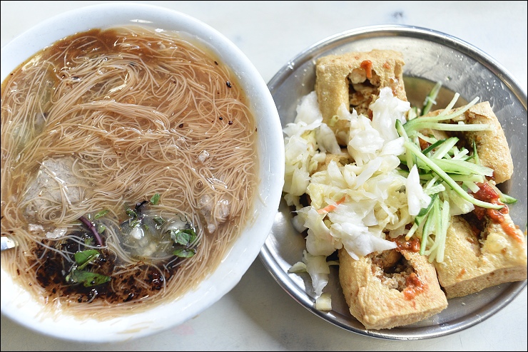 正老牌麵線糊和臭豆腐有很大的內用區,麵線糊和臭豆腐要分開點,麵線糊可選蚵仔、肉羹和魷魚嘴三種配料,麵線本身跟北部口感完全不同,口味要看個人喜好,