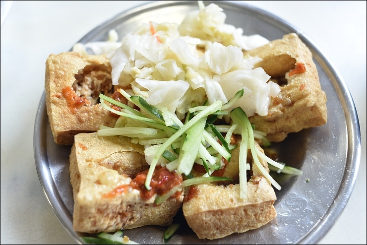 臭豆腐也跟北部的不一樣,是外酥內嫩四角戳洞加醬的那種,不錯吃,但前一天的一中夜市21臭豆腐相對較特別。