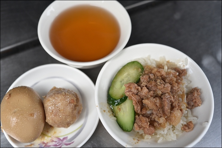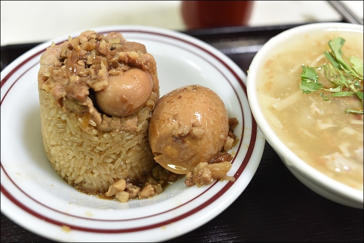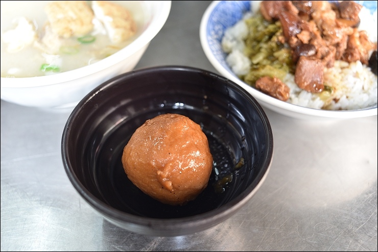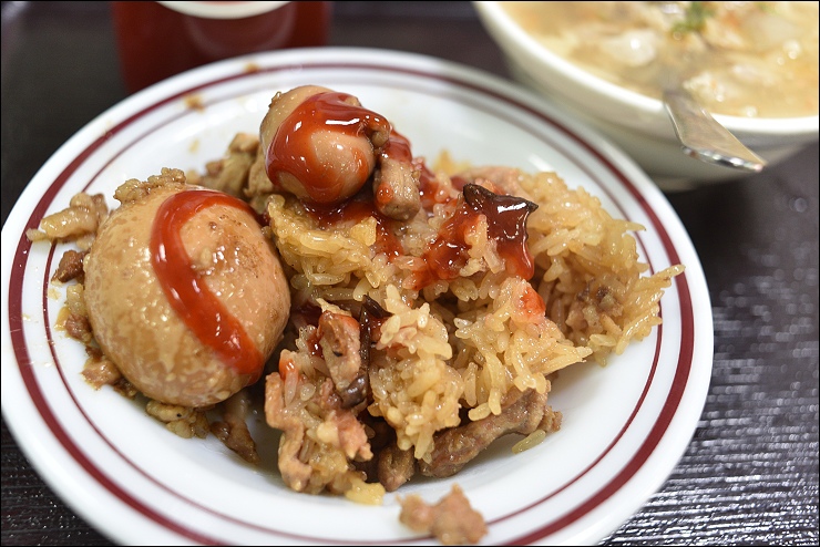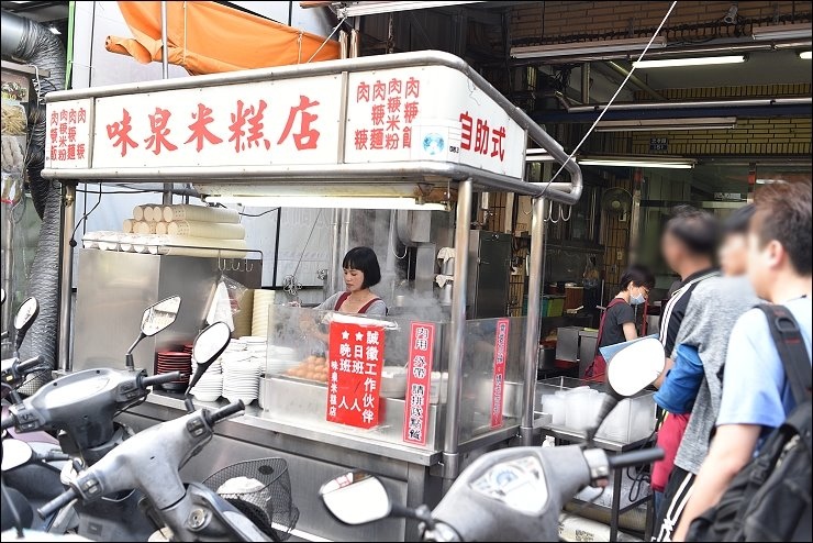 再過去一點就是忠孝夜市排隊人氣美食前幾名,然後也有不少網友留言推薦的味泉米糕店啦!初訪先來一套米糕+滷鴨蛋+肉羹湯。