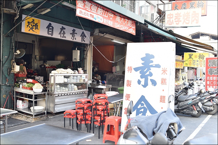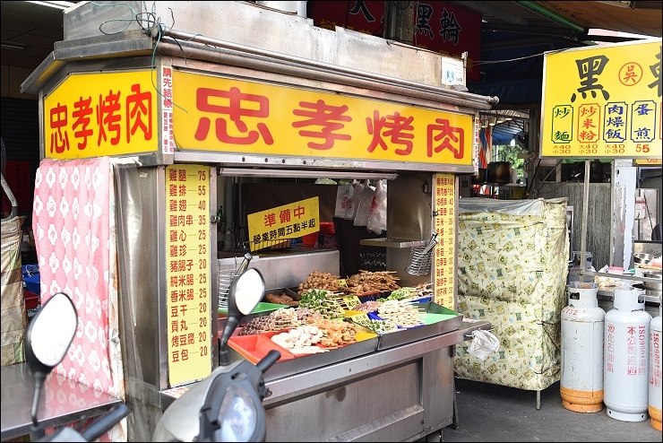 回飯店中場休息完畢,最後一場我們轉往台中路方向覓食!自在素食和忠孝烤肉都是忠孝夜市人氣店,尤其是忠孝烤肉超專業,準備中有牌子告知營業時間,等到大家開始排排隊之後,牌子會換成還要等XXX分鐘,讓大家抓時間回來拿,非常專業!