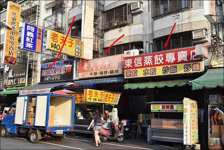 阿義紅茶冰隔壁的老夫子牛排和東信蒸餃也是飯店有按讚的推薦!允嘉舅舅則是推另一間德洲牛排,說是台中出差必吃,蘑菇醬很特別,不過這幾間我們都先跳過,趁天還沒黑的下午茶時段,先進攻下面的正老牌麵線糊六連彈!!