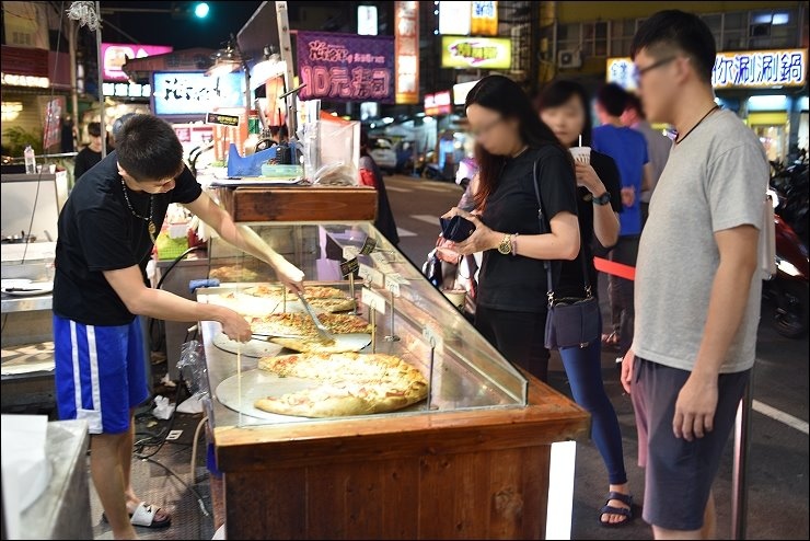 徐大姐炸香香和怪戰披薩入夜後二間都有排隊人潮,怪戰披薩的20吋果然是怪戰等級,可以一次買單片。