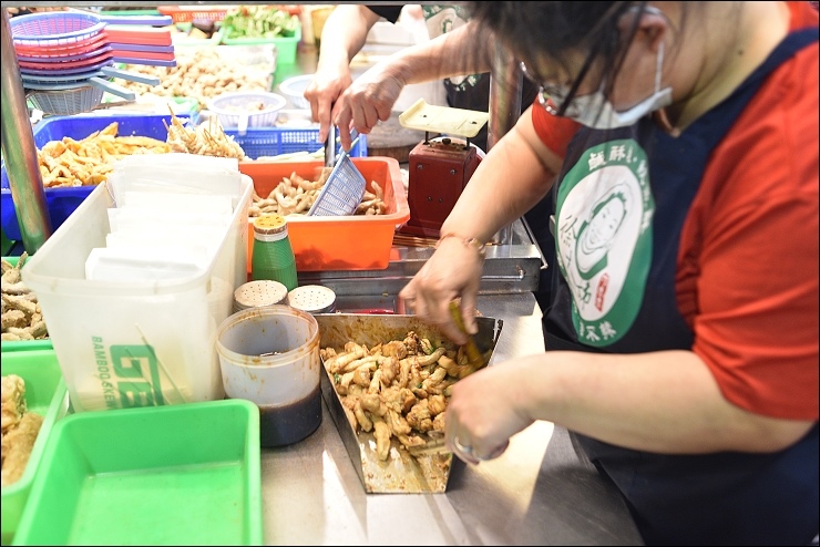 徐大姊炸香香的炸物有刷醬,允嘉哥蠻愛的,跟板橋裕民街夜市排隊人氣的炸雞世家有點類似。