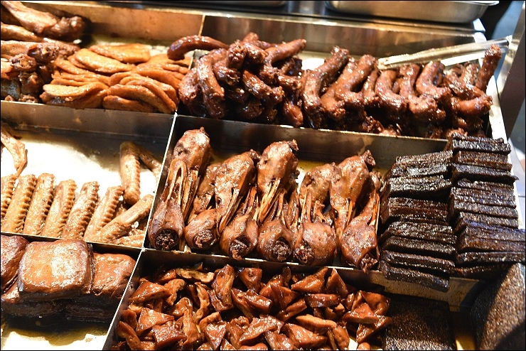 飯店和網友留言推薦的忠孝夜市滷味有三間,明哥滷味、廣式滷味和一級棒火鍋對面的黃金滷味,前二家是加熱的,最後面的黃金滷味是乾滷味(好像沒開沒拍到),這次先跳過,放進下次的覓食口袋名單。