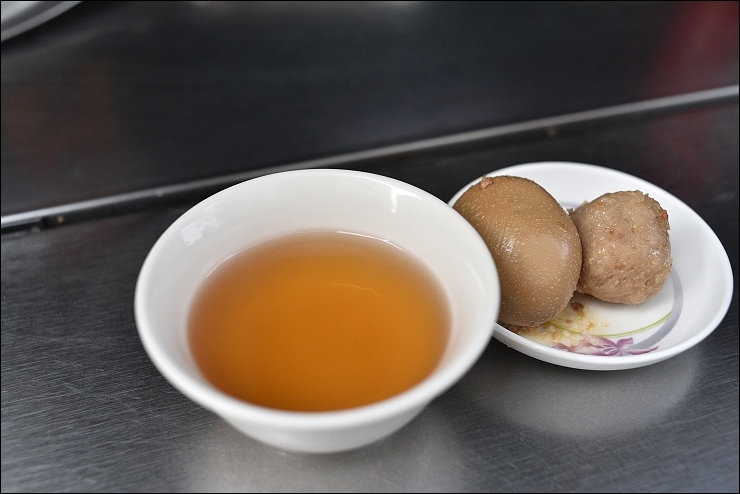 米糕本身就附上一顆鳥蛋,口味還不錯,加辣椒醬吃更讚,肉羹湯則是相對一般。