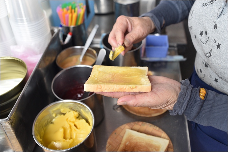 隔天早上外帶美乃屋的木瓜牛奶配烤土司當車上點心,根本還沒上交流道就全嗑光,草莓奶油、花生奶油和巧克力奶油都好吃,老板娘說要晚一點才有賣奶酥口味。