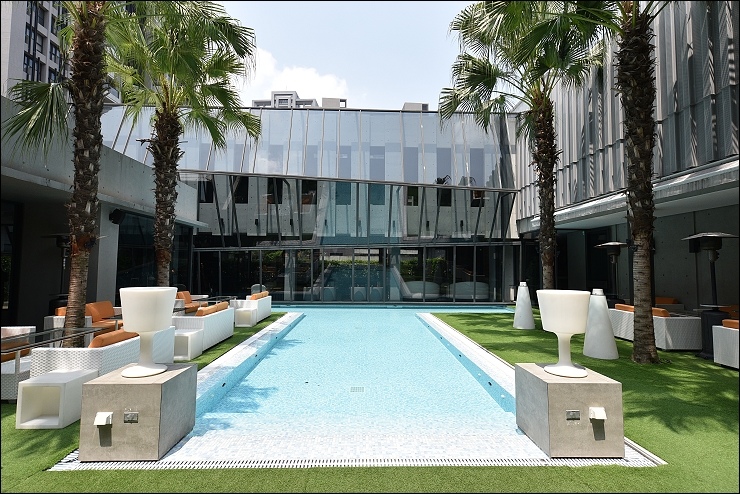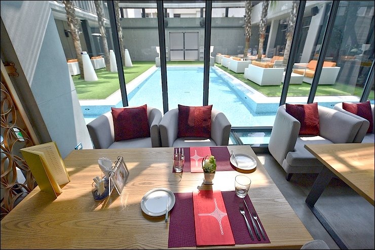 戶外的T型泳池用餐區,聽說愈夜愈美麗,很適合辦夏夜活動或是生日開趴,這裡也成為不少偶像劇取景的熱門點。