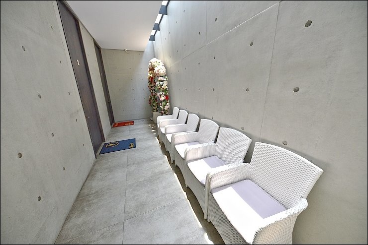 清水模建築的極簡外觀,第一眼給人的感覺是低調兼具隱秘性,不知道要帶多少銀兩才能進的去也出得來。