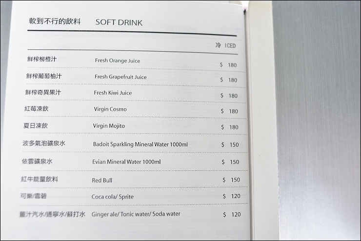 Beluga的水資每人80元,可選進口礦泉水或氣泡礦泉水,服務人員補水非常迅速。