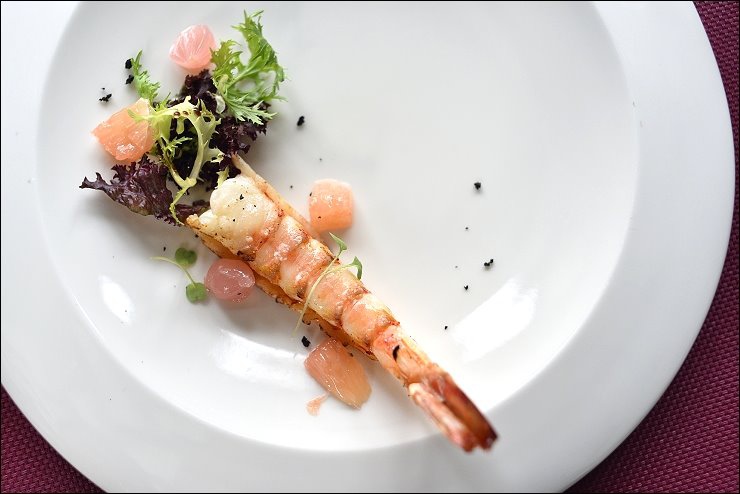 開胃菜我們點了煎明蝦(需加價150元)、炸牛尾球和干貝薄片,份量不多,通通都好吃,其中煎明蝦是大家的最愛,不過我覺得干貝的醬汁再多一點會更好。
