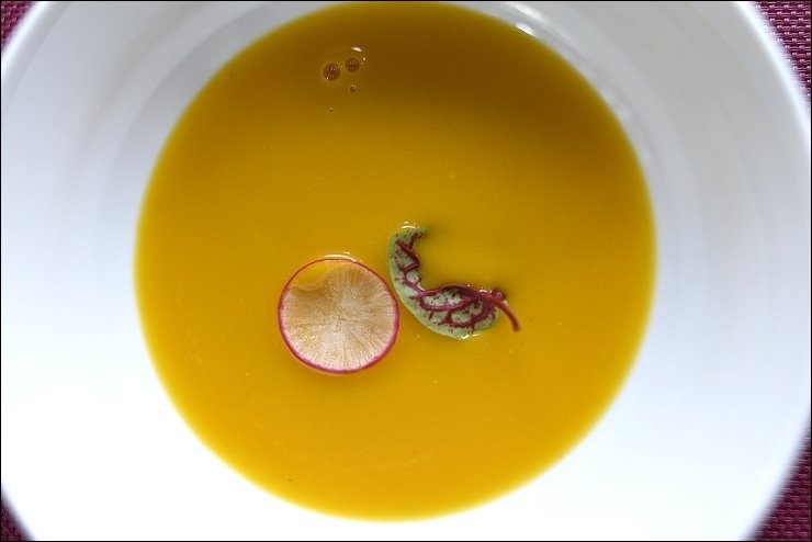 南瓜濃湯+醃製鮪魚+山蘿蔔,濃郁好喝!吃之前還可以看服務生表演,我們家就看了三次~~