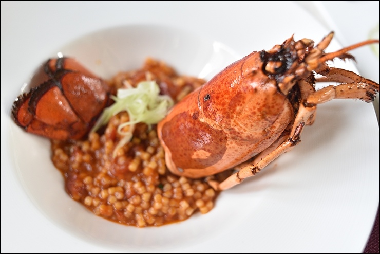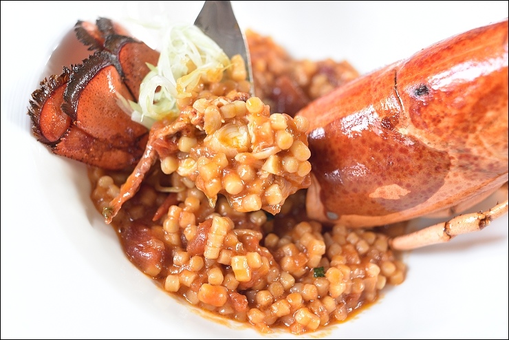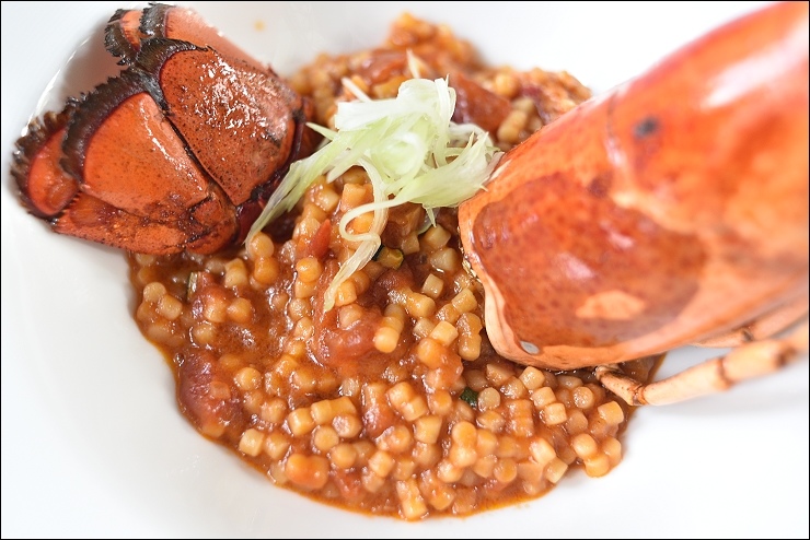 每日限量二客也是最高單價的龍蝦珍珠麵,龍蝦肉混在圓圓滾滾的小小珍珠麵中,和帶酸夠味的醬汁有搭。