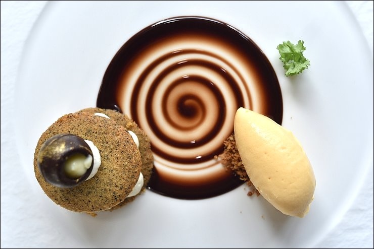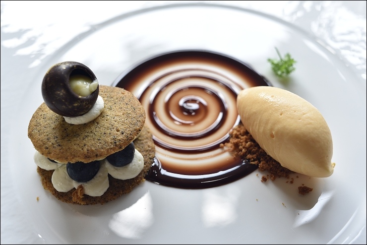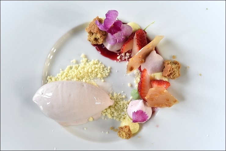 甜點有兩種,草莓冰淇淋加白巧克力碎片、草莓綿花糖跟木瓜冰淇淋與伯爵餅水果塔的組合,木瓜冰淇淋讓人印象深刻,好純,滿口的木瓜香氣四溢。