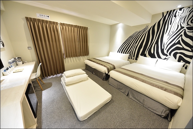 創意雙人房的忍者、長頸鹿、大象和麋鹿彩繪感覺都是活力十足!!也有創意雙床房提供二張單人床的房型,不過這些都不是重點,主要賣點還是在下樓即達的一中商圈XD