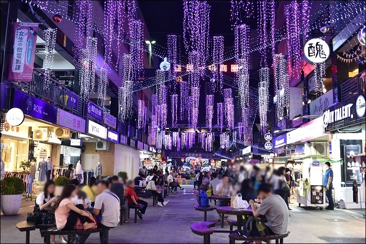 飯店後方是益民一中商圈,周五夜晚人潮不少,晚上打燈還蠻美的,對面合作的中友停車場一天收費280元,我們住的這天很多客人都是勇猛的推著行李箱從台中火車站走過來~~(背包客94狂)