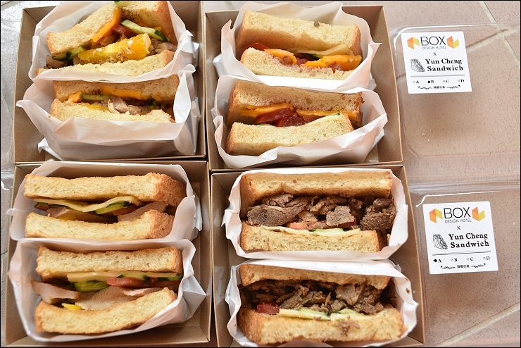 早餐雖然有放在類似必勝客那種保溫袋裡,但拿到的時候看自己取用的時間,可能會是冷掉的,因為係與外面個人工作室合作送餐的三明治。原本以為這個價位,飯店提供的早餐會很弱,但意外的還ok,不過我們家還是出門拚了幾間早餐蛋餅和飯糰!只能說太久沒衝台中啦~~~
