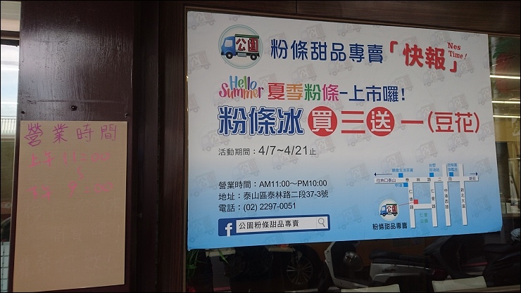 泰山公園粉條甜品專賣就是新莊公園粉條冰的新開店面,老板說去年冬天開幕先賣甜湯,泰山店面的地址是新北市泰山區泰林路二段37-3號,旁邊就是仁愛公園,也硬要開在公園旁就對了。