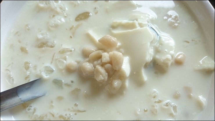 公園粉條冰的豆漿豆花加花生,老板說是用非基改黃豆,豆漿是完全沒有加糖的那種,所以要吃甜的話要另外加糖水,因為每天現煮,想要吃冰冰涼涼的,還要加冰才行,整個不甜膩,我喜歡~~