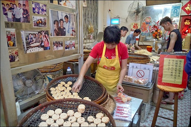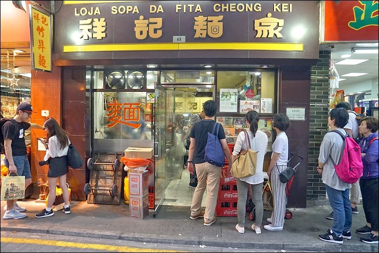 其實還好沒買到餅,因為沿路太多好吃的,如果提個餅在手很難邊走邊吃的啊,福隆興街這條又稱為紅窗門街,是電影伊莎貝拉及2046的拍攝場景,是一條相當出名的老街,以前聽說是著名的煙花柳巷(難怪是紅窗),如今轉型蛻變為美食一條街,各種小吃店伴手禮店林立,小虎說這間祥記麵家可是超過50年的老店,其中最出名就是招牌蝦子撈麵,古法製作的竹昇麵口感很有嚼勁(小虎掛保証),眼看外面已經排起隊來,這次又沒辦法嘗到,只好先介紹給大家,下次再來!