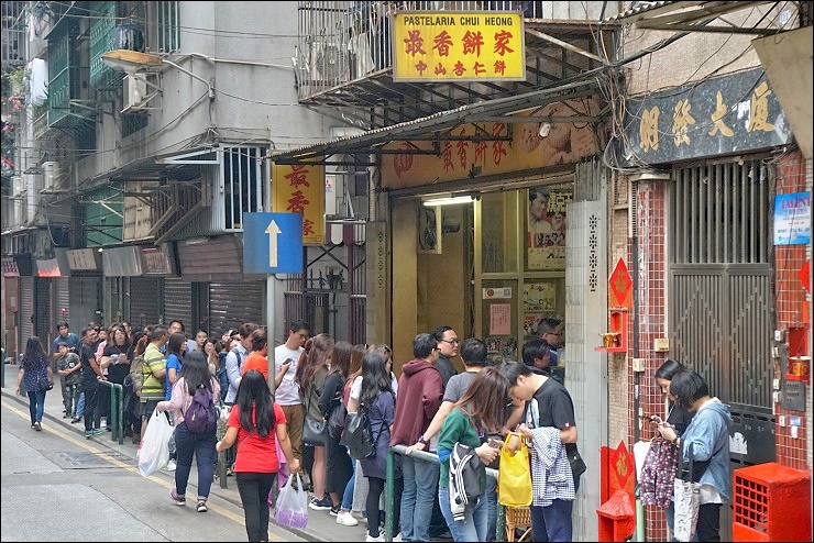 之後我們步行下山,沿著小徑來到澳門人自己會買的伴手禮:最香餅家,是目前現存唯一遵循傳統古法炭火手工熏烤的杏仁餅,也就是澳門最後的炭燒杏仁餅,不過這天遇到香港及澳門的大節日(復活節)人滿為患,許多香港人都來澳門玩,所以大排長龍啊~~幾樣人氣商品皆已賣完,我們趕行程當然就不跟著湊熱鬧啦,不過大家有來澳門記得試試,聽說蛋黃肉心杏仁餅最夯!另外他們在澳門百老匯酒店的美食街開了分店(攤位那種),本來我們打好如意算盤,決定去那裡再買(雖然會每盒會貴10元澳幣),但總比買不到來的好啊,結果人算不如天算,我們去的那天剛好遇到他沒來做生意orz...